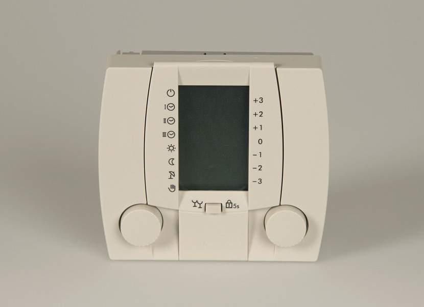 Alternativ zu einen digitalen Raumgerät kann auch ein analoges Gerät eingesetzt werden. Die Korrektur der Raumsolltemperatur von +/- 3K und ändern der Betriebsart ist möglich.