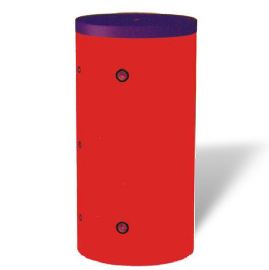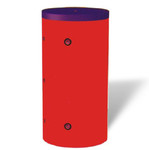 Stehender Warmwasserspeicher mit eingeschweißter Heizwendel, Korrosionsschutzemaillierung des Behälters und der Heizwendel, auswechselbare Schutzanode, Reinigungsflansch, Brauchwasser- und Heizungsanschlüsse seitlich angeordnet, Tauchhülse für Temperaturerfassung, Hartschaumisolierung.